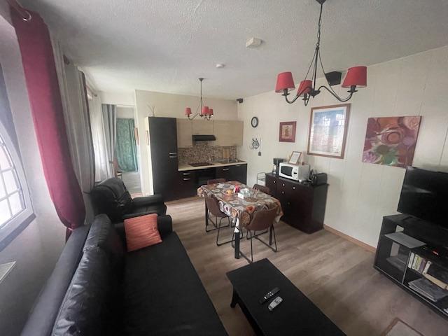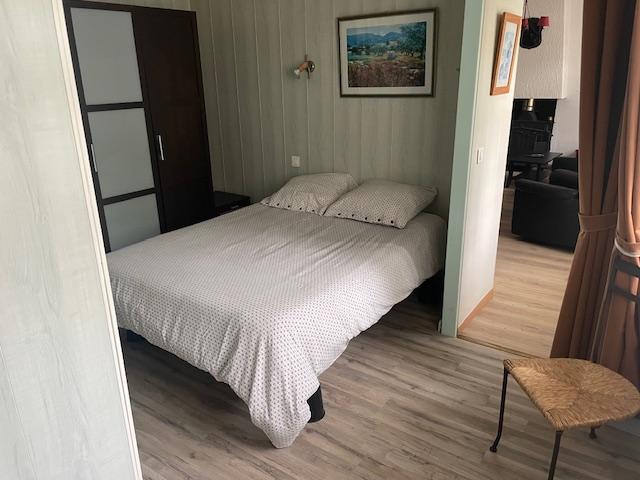 -1 séjour-salon agréablement décoré équipé d’une table et 4 chaises, d’un canapé cuir 3 places, d’une télévision LED 93 cm captant toutes les chaînes de la TNT, d'un ordinateur et d'une cheminée avec bois fourni.